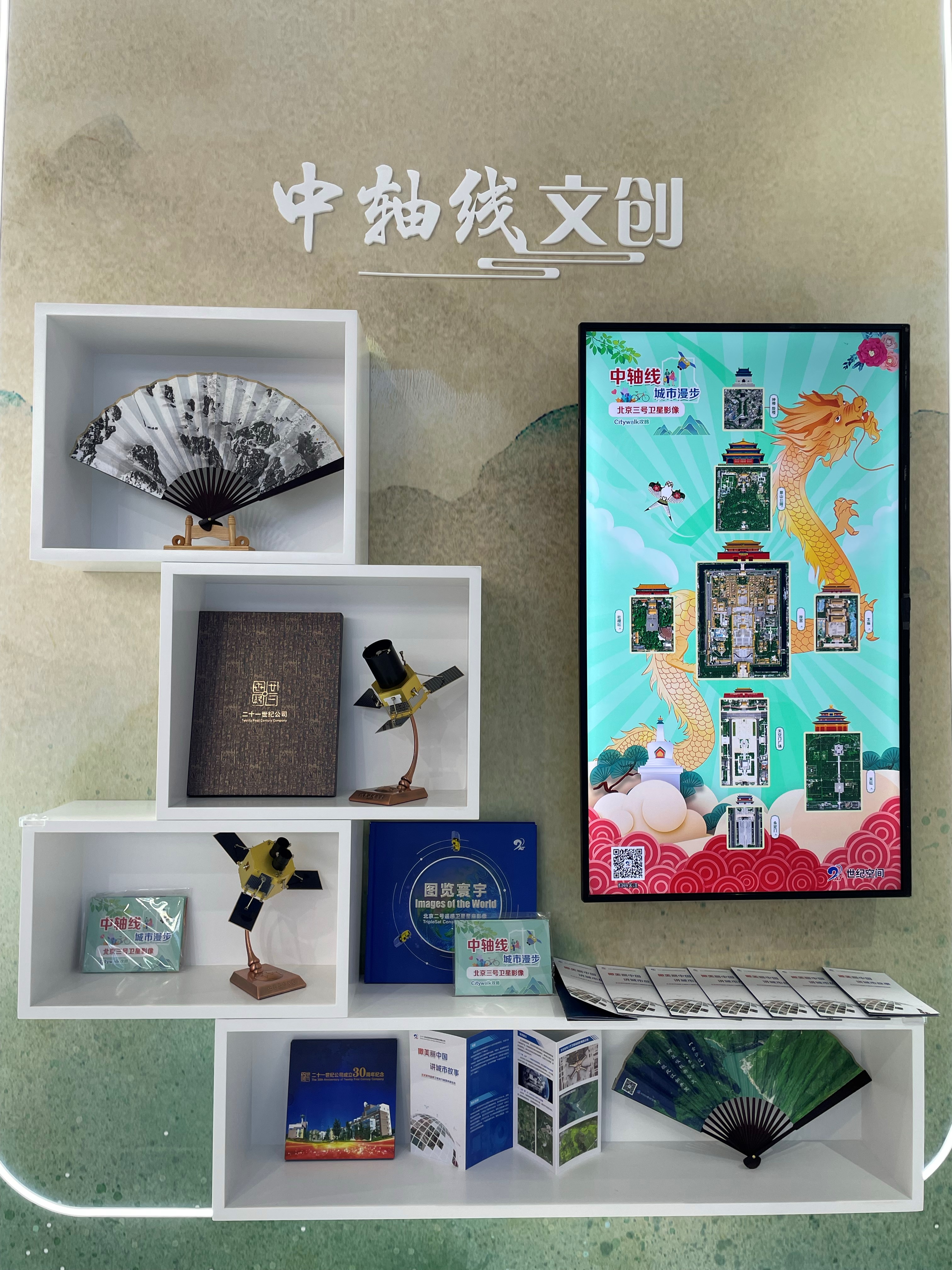 此外,世纪空间还参与了中轴线文创展览,展示了利用中轴线卫星遥感影像制作的中轴线海报以及系列遥感卫星影像文创礼品等。