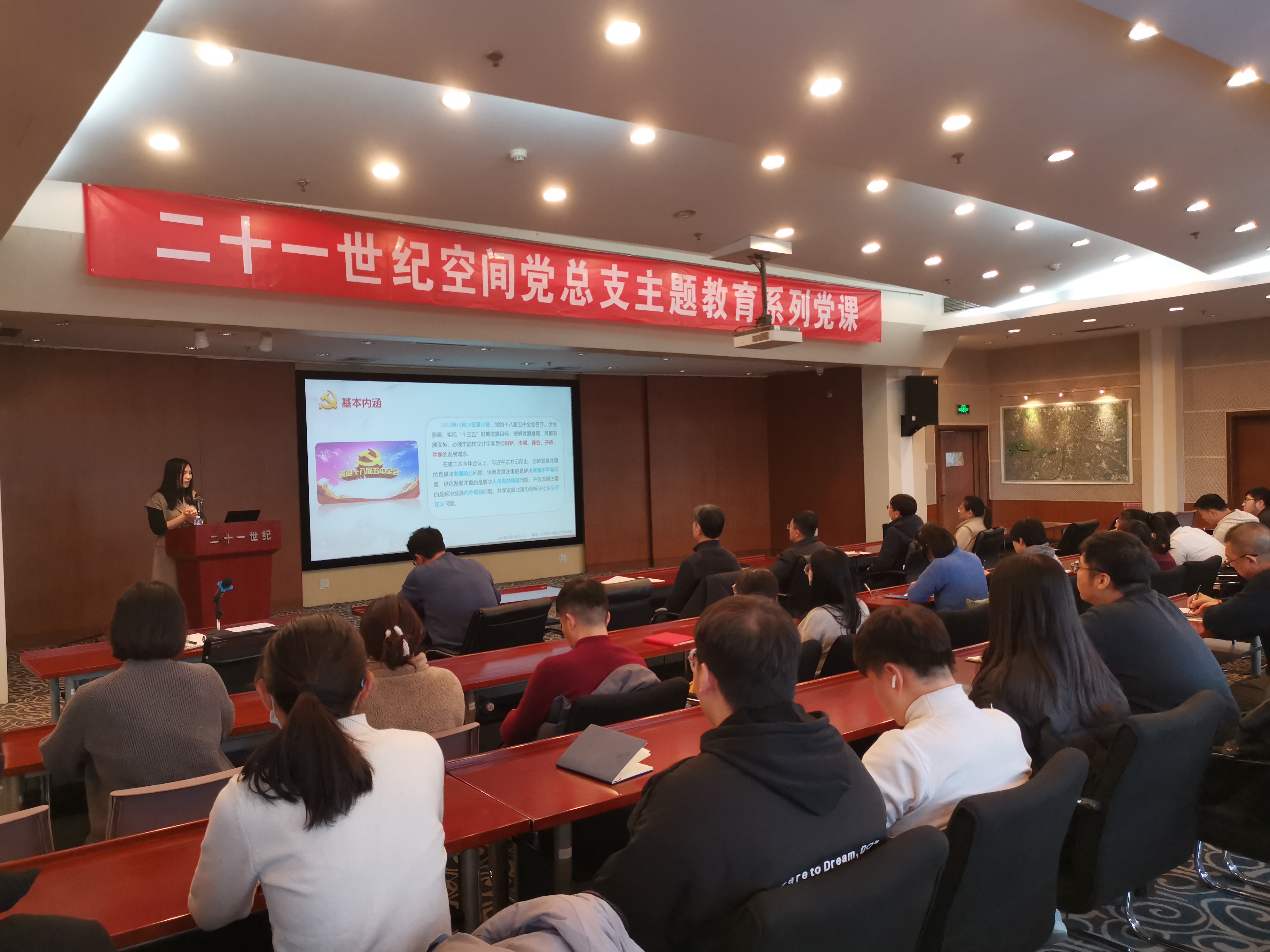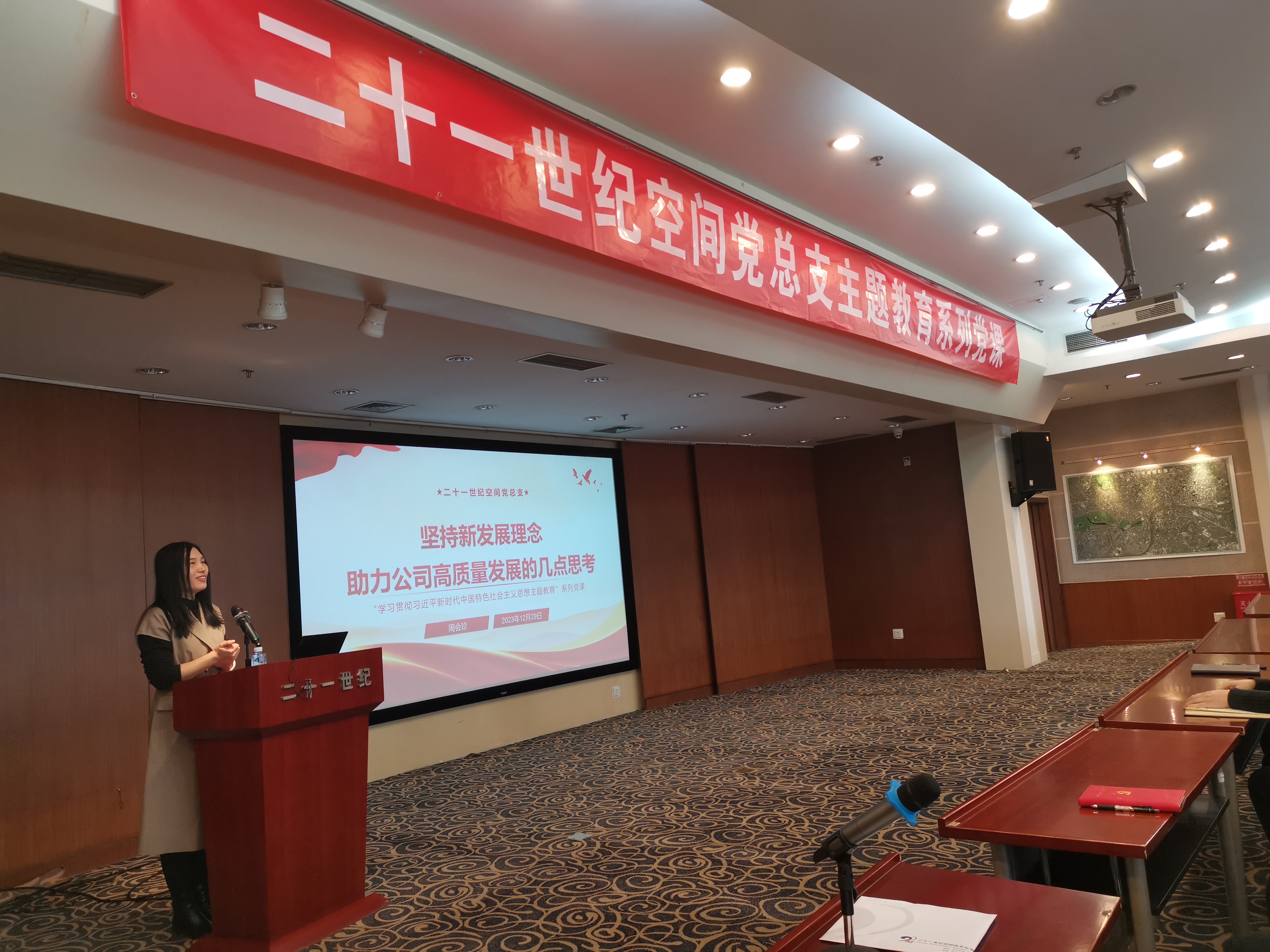 为深入开展学习贯彻习近平新时代中国特色社会主义思想主题教育,2023年12月29日,公司党总支系列党课第二讲开课,公司党总支纪检委员兼第一党支部书记周会珍以“坚持新发展理念 助力公司高质量发展的几点思考”为主题授课,公司党员、入党积极分子和团员代表共60余人参加了党课学习。